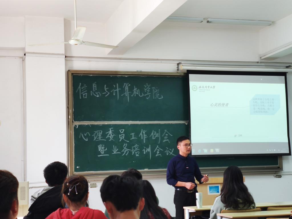 本网讯10月22日中午,信息与计算机学院在经计楼113教室举行心理委员专题培训会。学院全体2017--2020级心理委员、新任心理委员、寝室心理信息员、学院学生分会相关成员和对心理学感兴趣的同学等参加了培训,培训由学院心理工作负责老师主讲。
