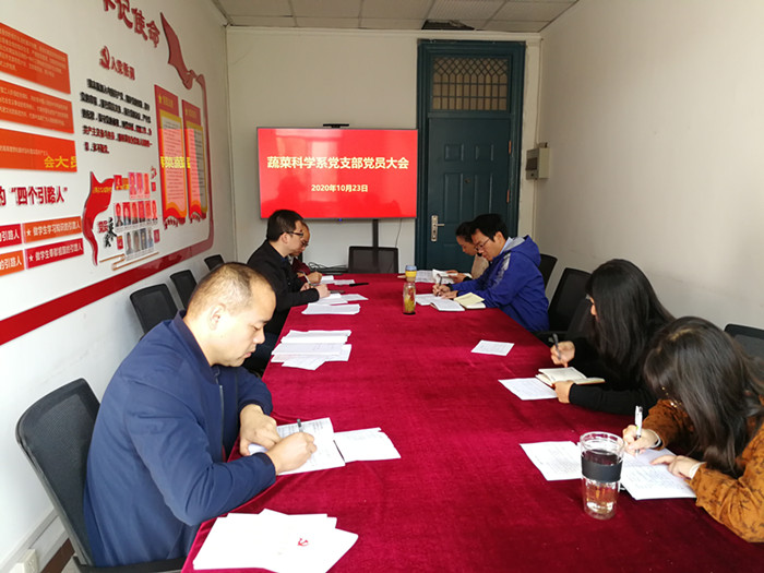 本网讯10月23日上午,蔬菜科学系党支部在支部党建工作室357开展主题学习教育,并集中观看纪念中国人民志愿军抗美援朝出国作战70周年大会。会议由支部书记朱晓彪主持,学院党委副书记兼副院长吴永红出席了本次会议。