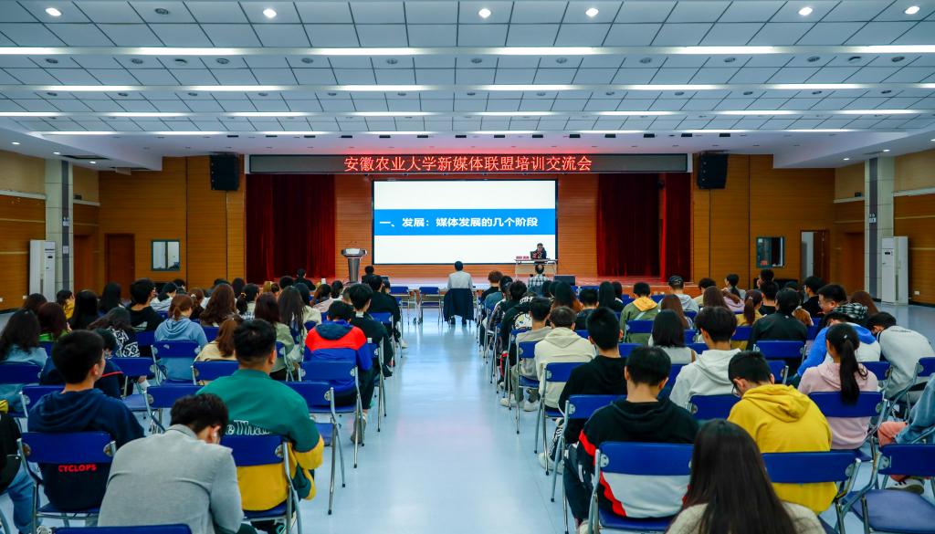 本网讯10月27日,校新媒体联盟在欣苑四楼大学生活动中心举办培训交流会,邀请安徽日报网站内容负责人武静作了培训。校党委常委、宣传部长张健出席会议,联盟成员单位指导老师、学生团队成员,融媒体工作室部分成员共计100余人参加会议。