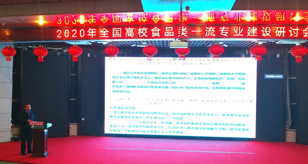 本网讯为了进一步深入贯彻落实全国教育大会精神和新时代全国高等学校本科教育工作会议精神,持续推进一流专业“双万计划”,做强一流本科、建设一流专业、培养一流人才,全面振兴本科教育,提高人才培养能力,实现高等教育内涵式发展。10月31日至11月2日,教育部高等学校食品科学与工程类专业教学指导委员会2020年全国高校食品类一流专业建设研讨会在滁州学院召开,我校以及安徽省食品专业合作委员会作为本次研讨会协办单位,茶与食品科技学院党委书记唐红萍、专合委主任杜先锋教授、副院长周裔彬教授、食品科学与工程系主任薛秀恒副教授、合肥市农产品加工研究院副主任梁进副教授以及食品系骨干教师汪名春副教授参会,全国90所拥有食品专业的高校500名教师参会并交流研讨,安徽教育厅高教处副处长朱永国到会指导并讲话。
