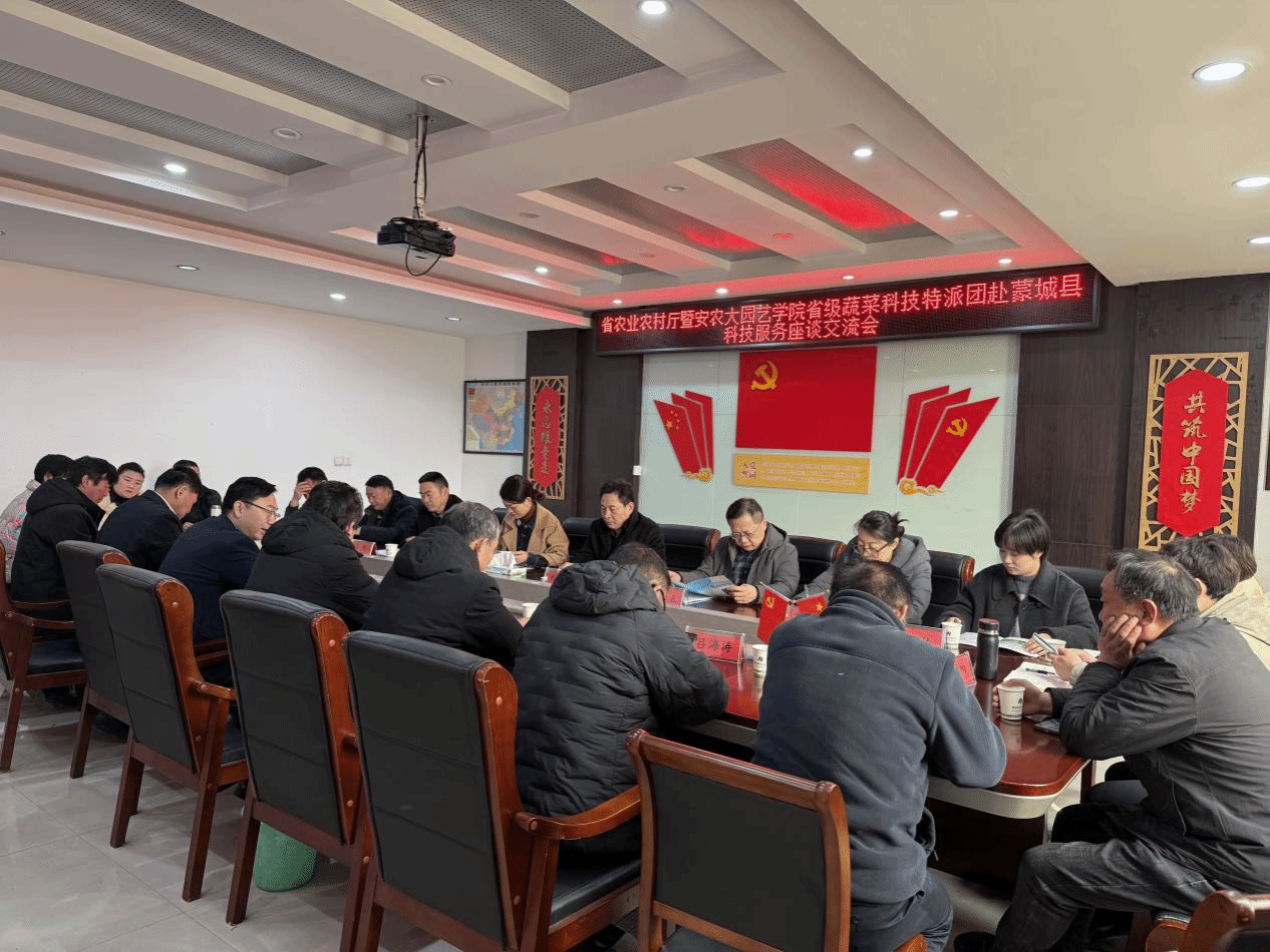 随后,蒙城县副县长涂建主持召开座谈会。双方就蒙城县蔬菜产业发展,特别是食用菌等特色蔬菜产业的品种选育、技术加工、品牌建设,毕业生就业输送、科技小院建立、以及座谈企业提出的生产技术难题等内容开展互助交流,对进一步加强校院合作方式进行了细致谋划。刘明刚结合调研情况,对蒙城县蔬菜全产业链建设提出宝贵意见。他指出,蒙城县在蔬菜产业,特别是食用菌产业发展上基础条件较好,政策、组织、技术、加工、冷链、保险、销售等体系建设已取得初步成效,要充分蒙城蔬菜特色资源优势,进一步做大做强蔬菜产业,实现产业兴旺,做出蒙城样板。他要求,园艺学院要与蒙城县紧密对接,创新合作模式,发挥学院蔬菜、特别是食用菌力量优势,助力蒙城县蔬菜产业发展。