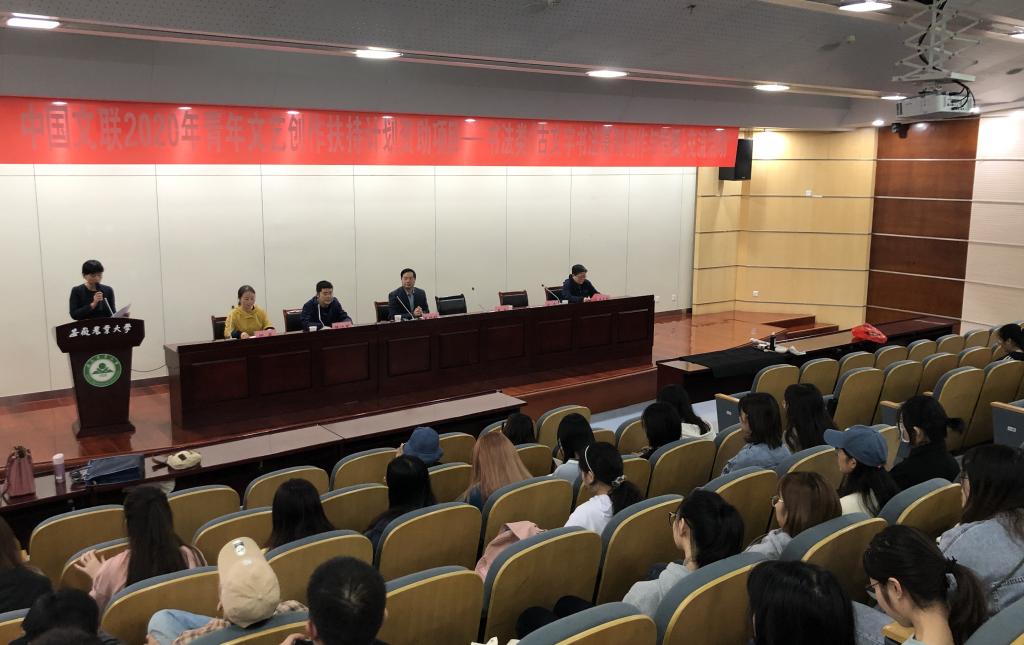 本网讯11月10日,中国文联青年文艺创作扶持计划项目、“古文字书法篆刻创作与传播”系列讲座在图书馆二号报告厅举行。此次讲座由安徽省文学艺术界联合会主办,人文社会科学学院、校语言文字工作委员会、安徽省书法家协会学术委员会联合承办。讲座邀请中国文艺评论家协会理事、安徽省文艺理论研究室主任、安徽省书协副秘书长史培刚作为主讲嘉宾。安徽建筑大学陈治军博士等项目组成员、人文社科学院中文系100余名师生参加了此次讲座。