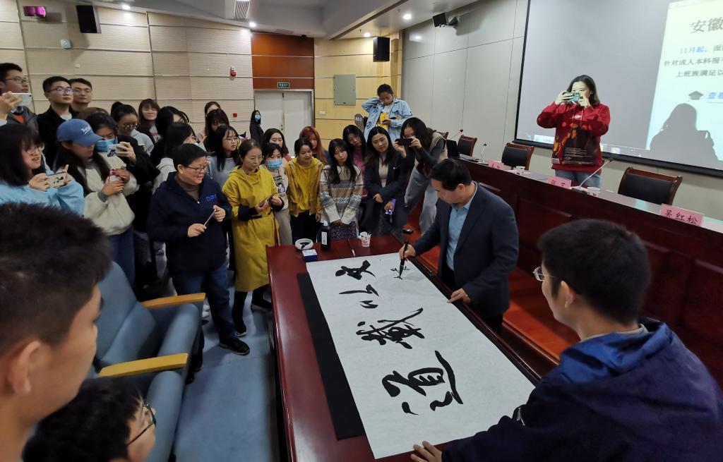 分享结束后,主讲嘉宾与现场师生分别就艺术创作、书法技艺进行了现场展示与互动交流。(通讯员:张旭念)