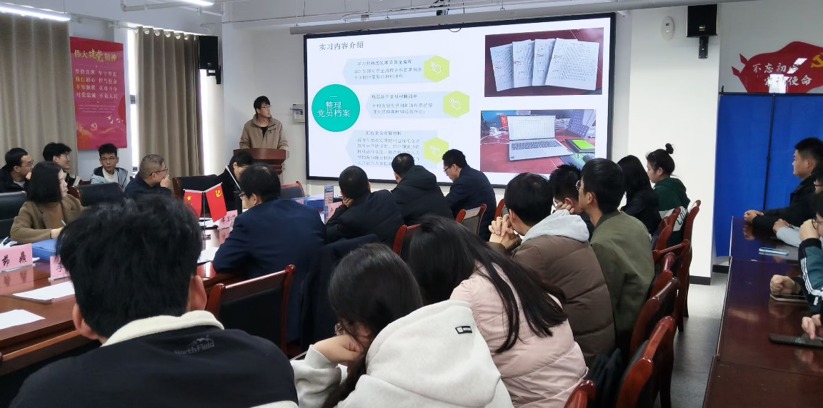 会上,同学们以PPT的形式汇报了寒期实习实践收获、体会与不足,以及入职后的打算。与会老师查阅了实习日志、实习报告和实习评价表,并进行评比打分。