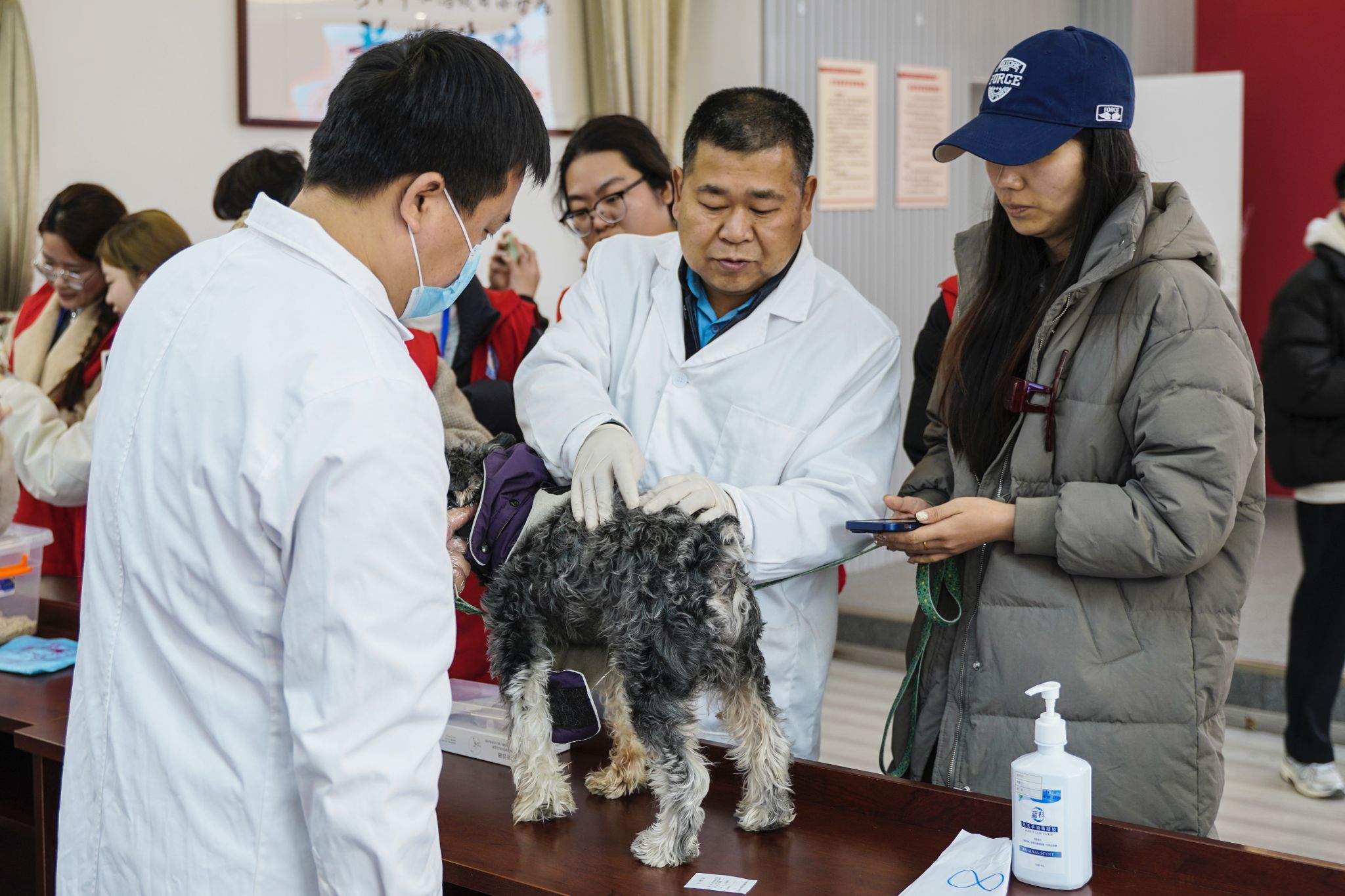 活动现场,由动物医学院刘亚副教授带领的师生团队为近50只宠物提供了免费体检、狂犬疫苗接种及健康咨询服务,并发放《爱宠口腔护理》《狂犬病预防指南》《犬猫营养管理手册》等科普资料300余份。针对宠物常见病防治、绝育必要性等居民关切问题,志愿者们逐一耐心解答,并结合合肥地区气候特点,为宠主定制个性化养护建议。