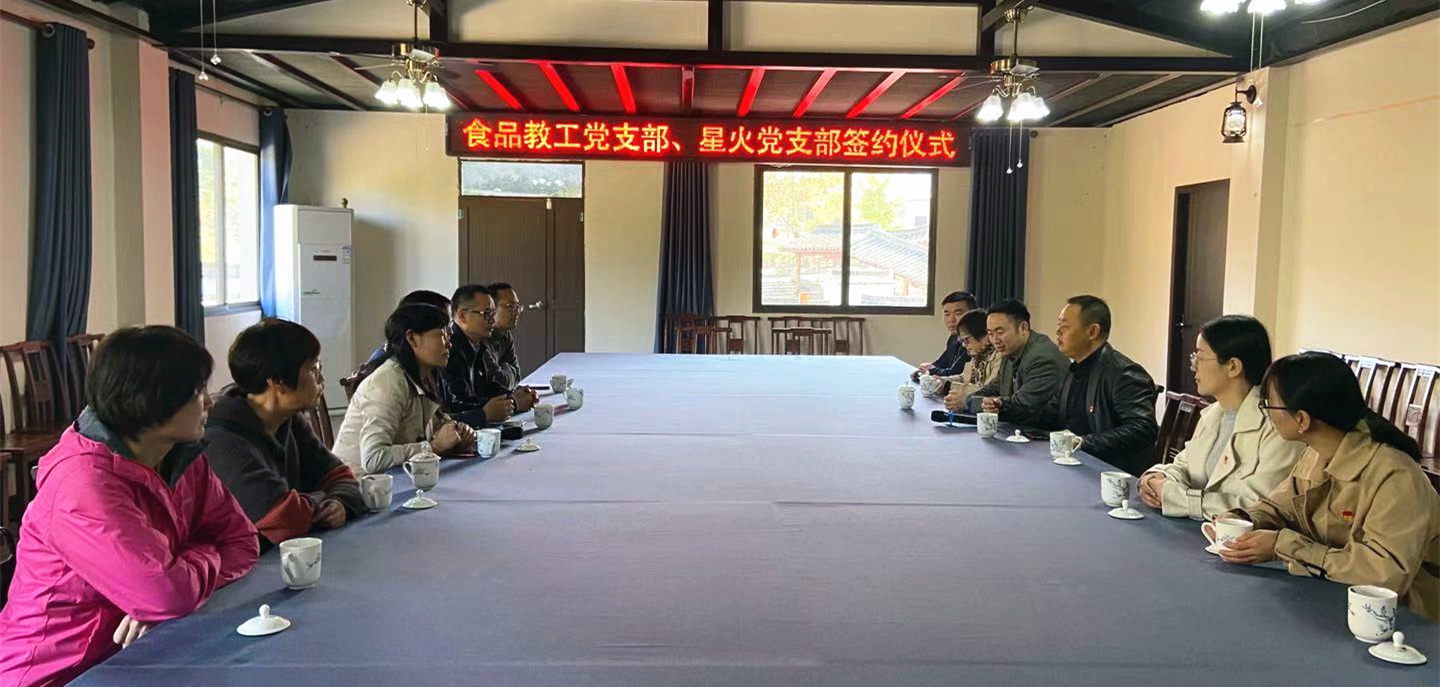 食品教工党支部一行首先来到安徽云岭星火旅游发展有限公司,开展食品技术服务和党建合作共建活动。安徽云岭星火旅游发展有限公司是皖南地区最大的食品(锅巴)生产加工厂家之一,其业务发展与党建融合具有一定特色。活动中,学院党委书记唐红萍介绍了我校和学院基本情况、食品学科专业特色和学院党建特色工作及开展党建合作共建的目的与意义。公司董事长王静华介绍了公司党建和企业发展情况。食品教工党支部与安徽云岭星火旅游发展有限公司星火党支部签订党建合作共建协议,双方就如何以合作共建更好发挥党员先锋模范作用,共同解决公司食品产业发展中的技术问题进行了深入交流。