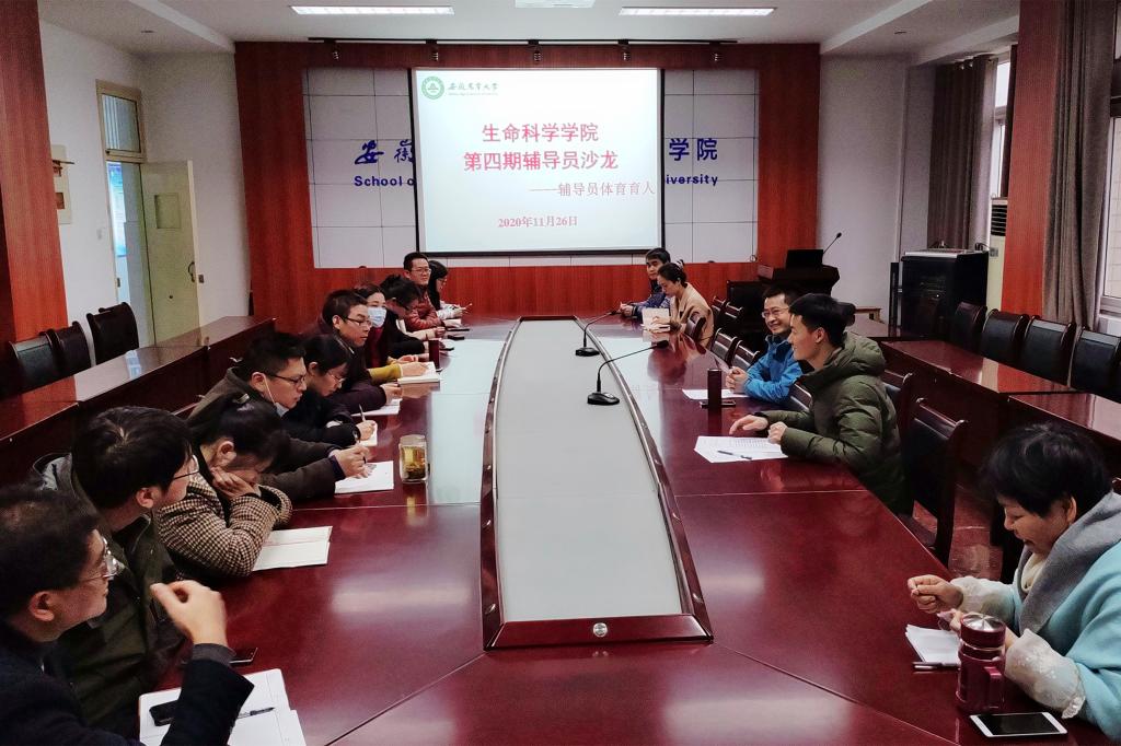 本网讯 为进一步推进辅导员交流与学习,切实加强辅导员队伍建设,进一步提升体育在高校立德树人中的作用,11月26日下午,生命科学学院在十教420会议室举行第四期辅导员沙龙活动。本次沙龙邀请了体育部岳保柱老师作为嘉宾出席,学院全体专兼职辅导员参加了此次沙龙。