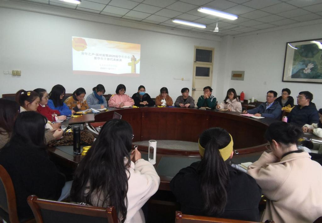 本网讯为更好推动学生分会深化改革,支持和引导学生分会更好地服务青年成长成才,12月1日,人文社会科学学院“青年之声—我与书记面对面”暨学生分会学生干部座谈会在学院204会议室召开。学院党委副书记、副院长吴永红出席会议。