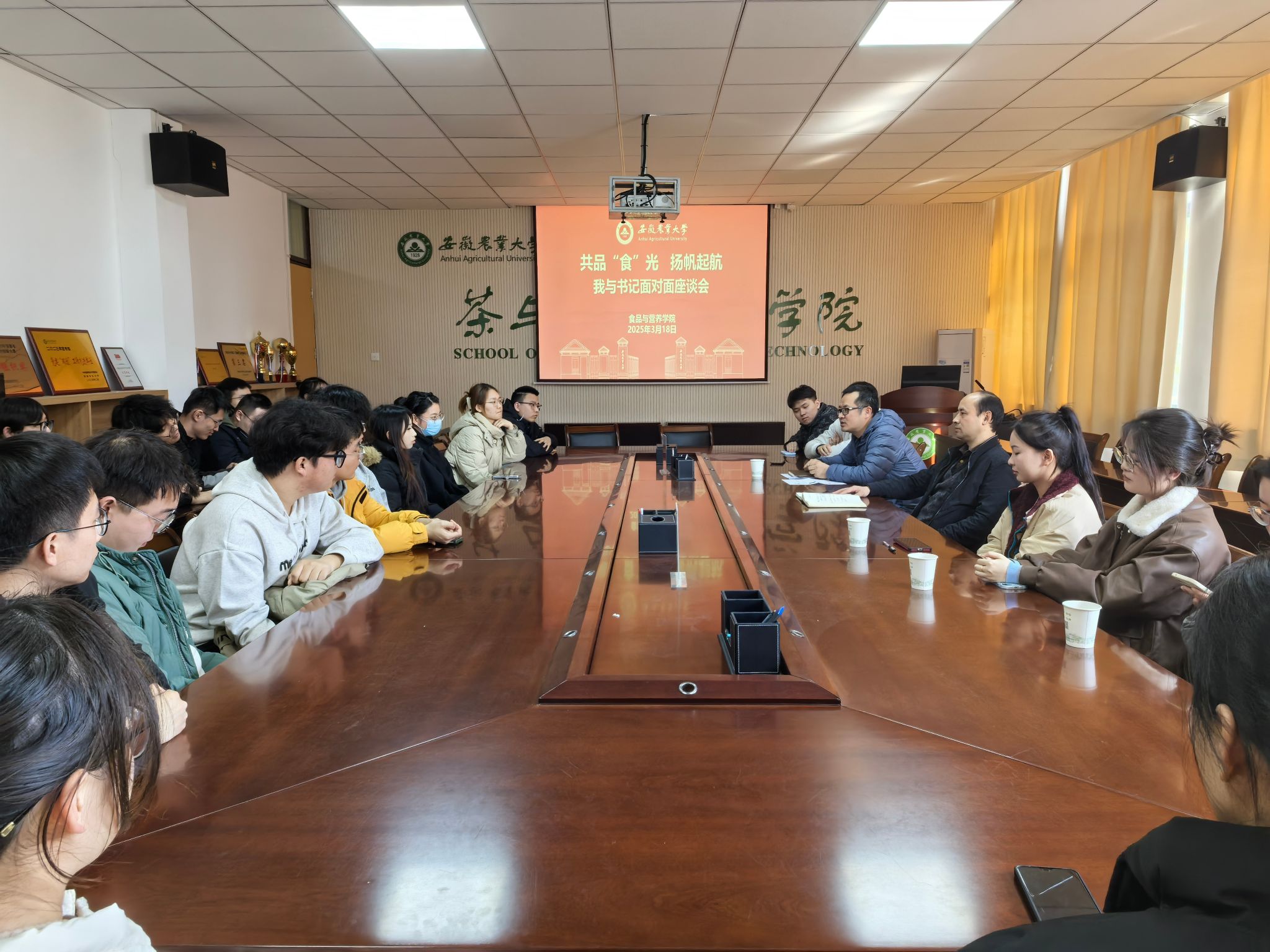 本网讯 3月18日下午,食品与营养学院在茶业楼219会议室举办2025年春季学期“我与书记面对面”交流座谈暨研招复试经验分享会。学院党委书记孙福,系部主任、2024届优秀校友代表,以及2025届部分毕业生代表参加了此次分享会。会议由院党委副书记、纪委书记夏晓昀主持。