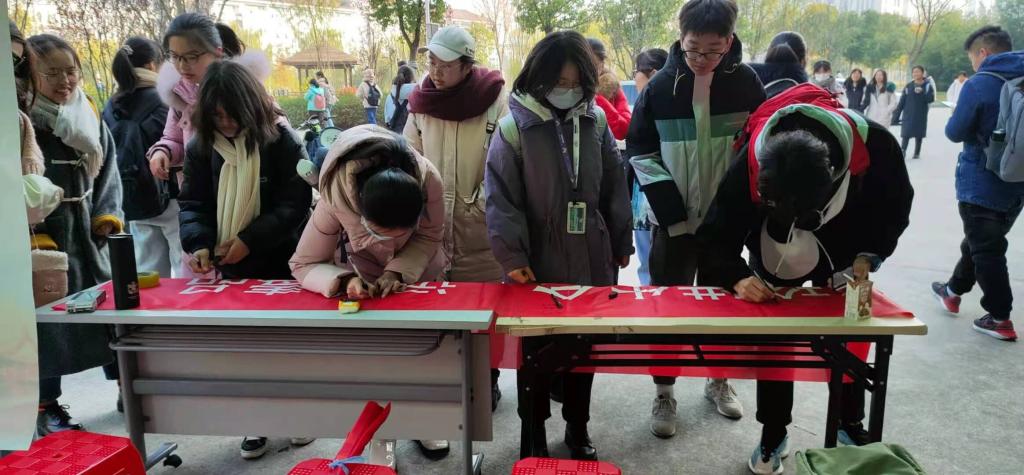 本网讯为深入学习宣传习近平法治思想,弘扬宪法精神,12月4日,在第七个国家宪法日和国际志愿者日到来之际,人文社会科学学院利用“一院一品”志愿服务平台,组织开展了“学习宣传习近平法治思想,弘扬宪法精神”暨“无毒校园,美好青春”禁毒志愿者签名活动,吸引了全校数百名学子参与并留下签名。大家纷纷表示,在国家宪法日当天参与普法主题活动很有意义,自己也要争做一名光荣的普法者,带动更多的同学参与到普法和禁毒知识的宣传工作中。