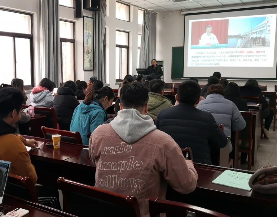 夏成云作为校党委讲师团成员,就学习贯彻习近平总书记考察安徽重要讲话指示精神开展专题宣讲,以《强化“两个坚持”,实现“两个更大”》为题,围绕“核心要义、重点任务、落地见效”三个主题进行了宣讲阐释。强调面对新形势新任务,全院教职工尤其党员干部要争当学习贯彻习近平总书记考察安徽重要讲话指示精神的先锋表率,增强“四个意识”、坚定“四个自信”、做到“两个维护”,坚定不移干在实处、走在前列、勇立潮头,为新时代建设美好安徽和高水平特色农业大学贡献更大力量。