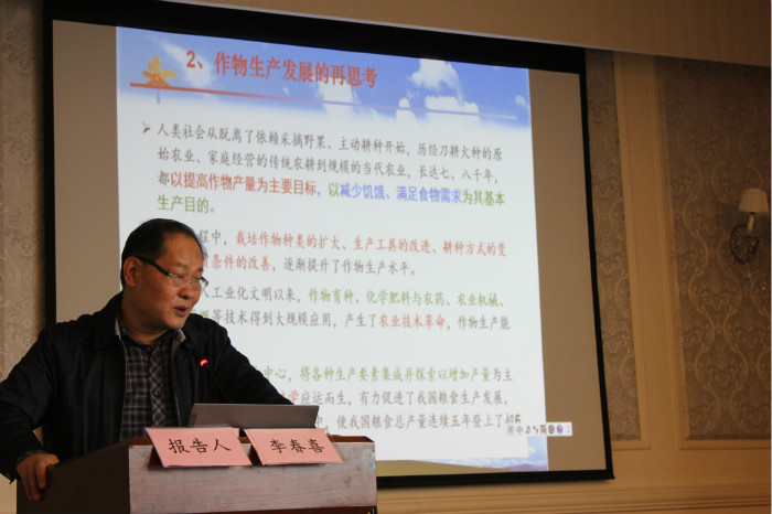 会上,李春喜教授作了题为《基于多目标协同发展的作物生产系统与粮食丰产科技综合评价》的主题报告,报告围绕“粮食生产如何转型升级,丰产增效如何科学评价”等内容展开,为“安徽粮食多元种植规模化丰产增效技术集成与示范”项目实施的多元种植技术模式推广和效益效率评价提供理论指导。