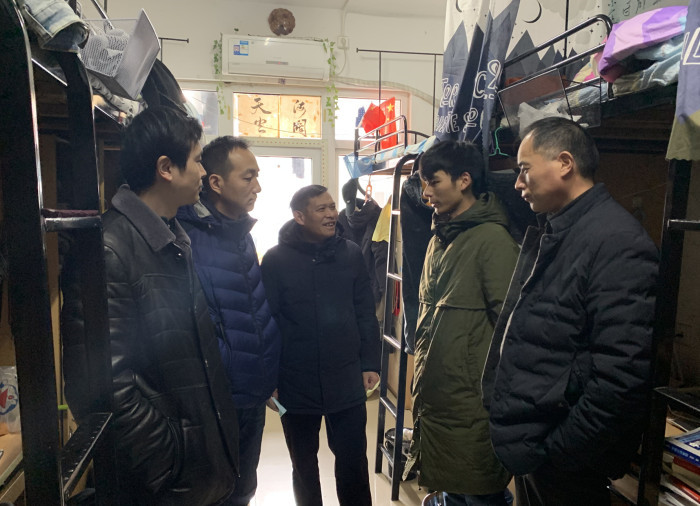 学院一行深入学生宿舍,逐一对各宿舍进行走访,询问了学生们在学习和生活中遇到的各种困难和问题,对学生们的寝室网络、食堂就餐等方面问题,为同学们进行了耐心详细的解答。方章东在和同学们交流的过程中重点强调了宿舍安全问题,不要使用大功率电器,养成良好生活习惯,寝室成员之间要和谐相处,营造积极健康的宿舍文化。