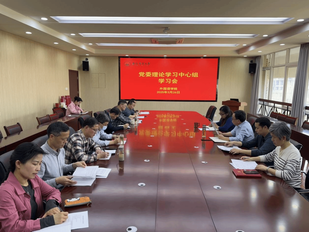 本网讯3月26日下午,外国语学院召开党委理论学习中心组学习会。学院党政领导、党委理论学习中心组成员参会。会议由学院党委书记何如海主持。