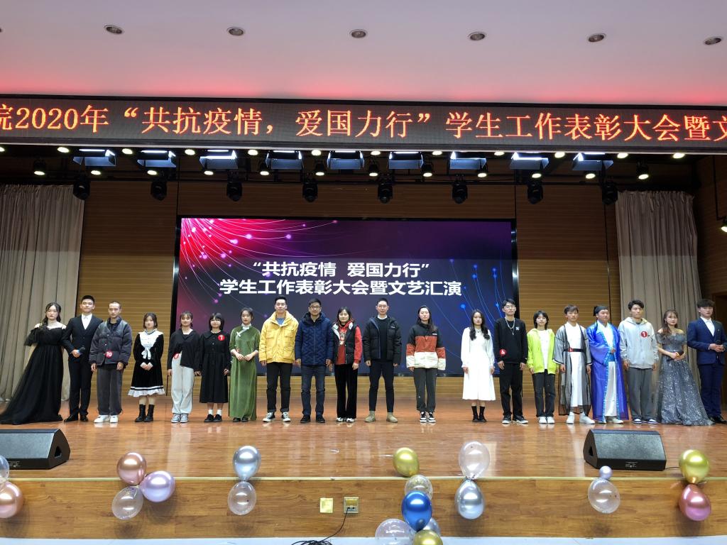 本网讯12月21日晚,经济管理学院在欣苑四楼小礼堂隆重举办“共抗疫情,爱国力行”学生工作表彰大会暨文艺汇演。校党委学生工作部、党委武装部、学生处(学生资管中心)处长姚莉、校党政办公室、信息化办公室主任韩弥明、校团委书记林煦东、校党委组织部副部长黄庆华、校招生就业处、校友会办公室副处长沈兆梅、信息与计算机学院党委副书记、纪委书记、副院长吕剑秋和经管学院党政领导,以及受表彰学生(集体)代表出席参加了此次活动。