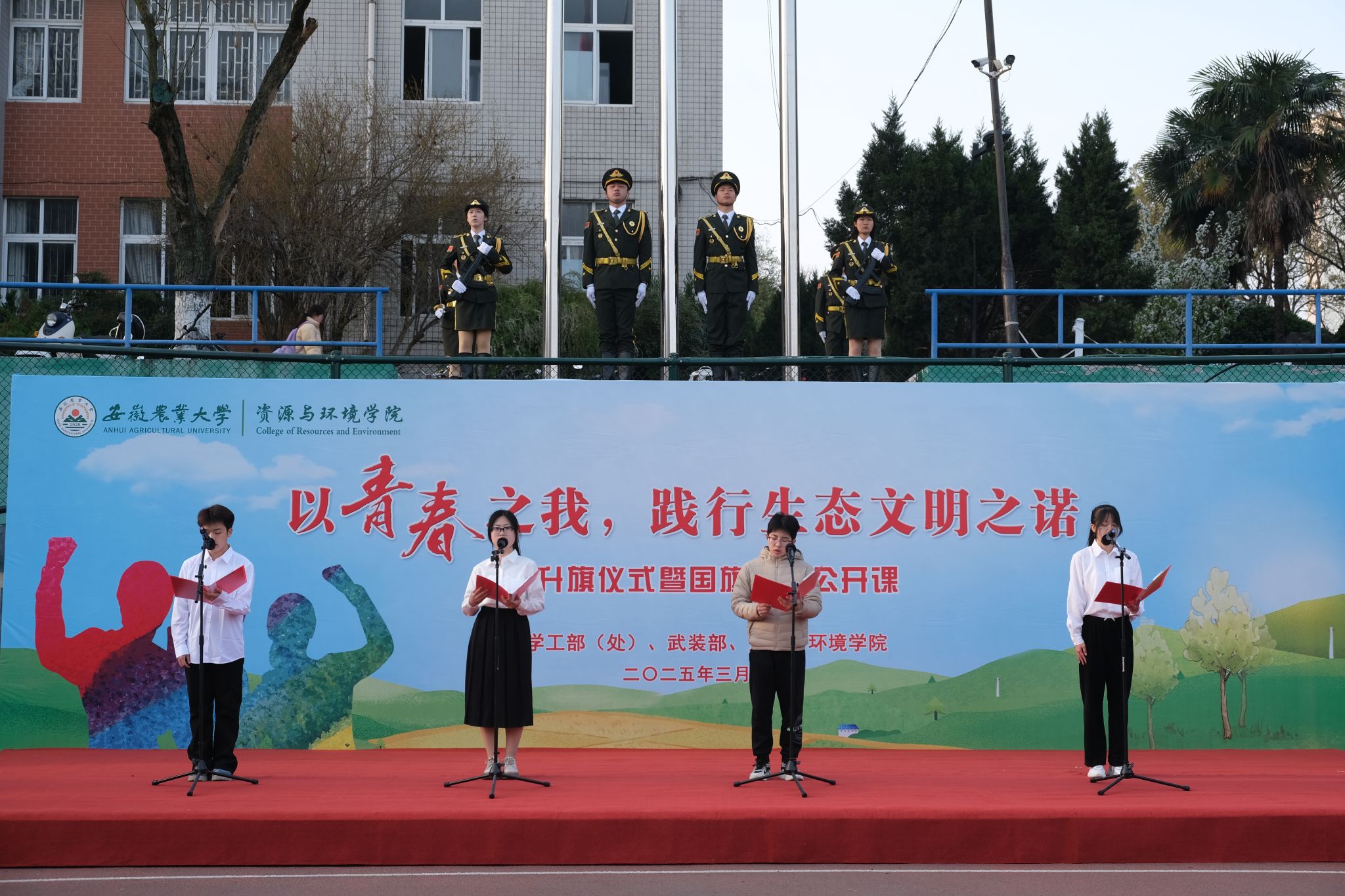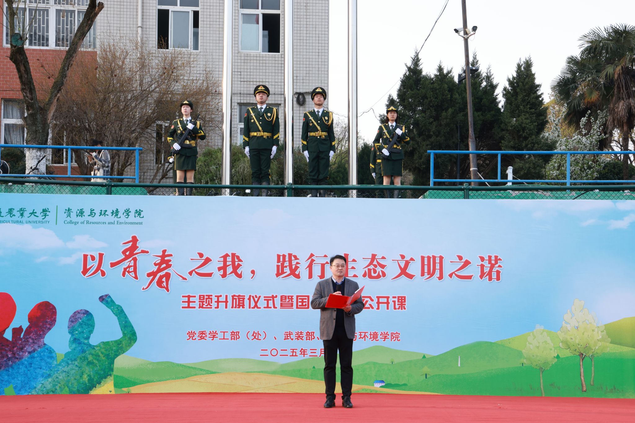本网讯 3月31日清晨,由 的“以青春之我,践行生态文明之诺”主题升旗仪式暨国旗下的公开课在第一运动场隆重举行。学院党政领导班子、教师代表、专兼职辅导员及全院学生共同参与。