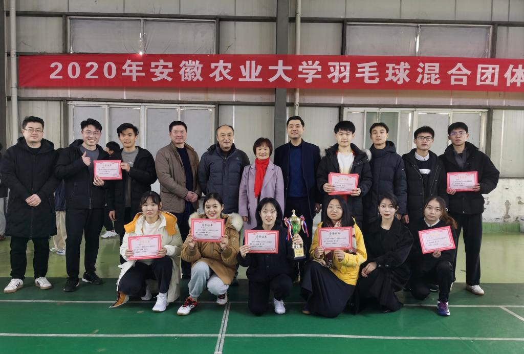 本网讯 2020年校大学生羽毛球混合团体赛于12月27日在我校第三运动场羽毛球馆顺利闭幕。植保学院、轻纺学院和动科学院获得了第1至3名,农学院、茶食学院、工学院、经管学院和外国语学院获得了第4至8名,体育部和相关学院负责人出席闭幕式并为获奖学院颁奖。