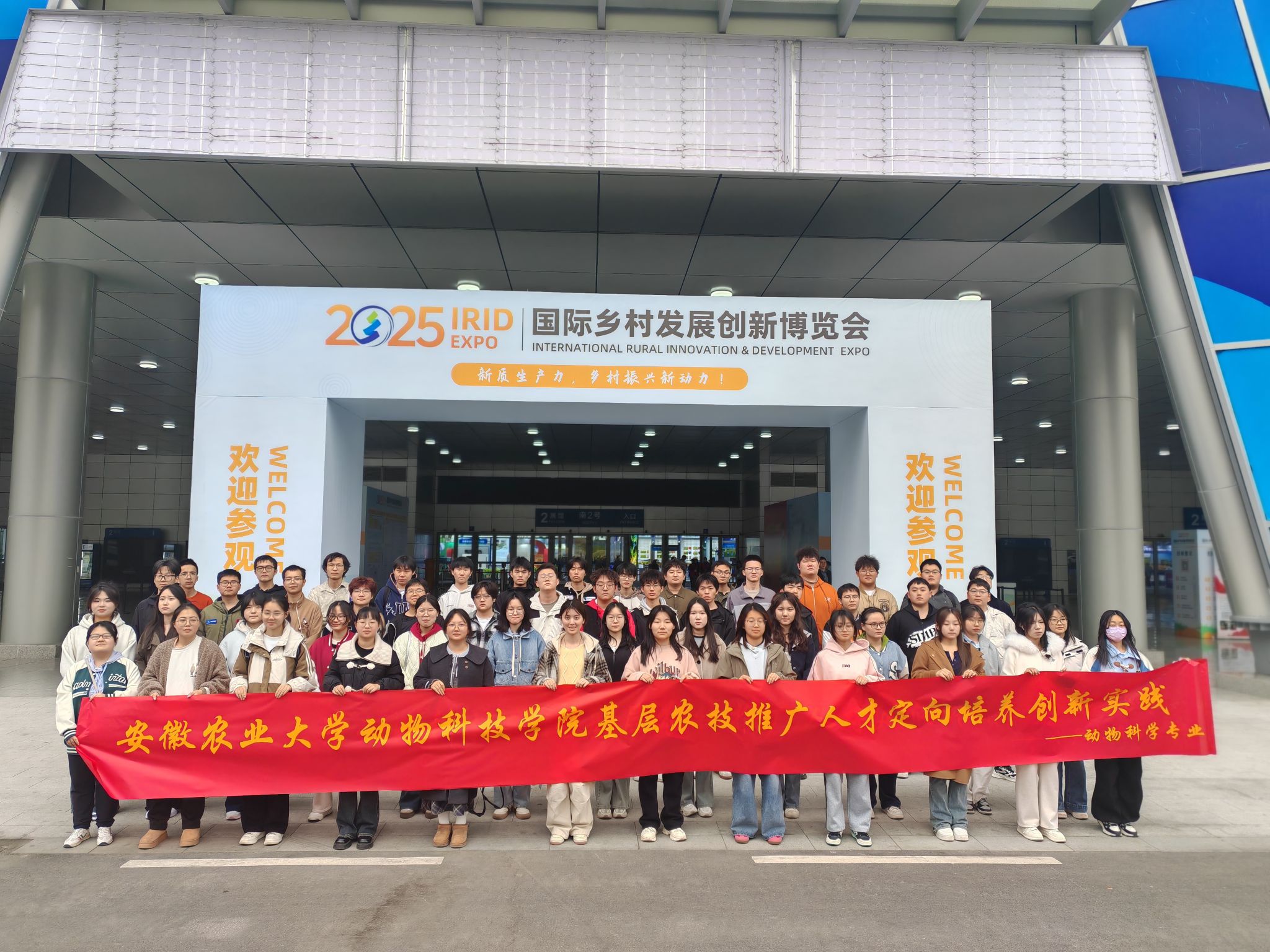 本网讯 由上海市国际贸易促进委员会和安徽省国际商会共同主办的2025国际乡村发展创新博览会3月27日在合肥滨湖国际会展中心开幕。3月28日下午,学院党委副书记卢伟、2023级动物科学专业辅导员张玲带领2023、2024级动物科学和水产养殖学专业定向生参加了现场研学活动。