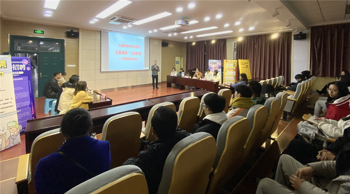 本网讯 为搭建用人单位与毕业生双向平台,切实做好2021届毕业生就业工作,12月28日晚,外国语学院在外语楼502室成功举办了安徽跨境电商代表团“五星徽商”企业联盟人才招聘专场对接会,对接会由学院党委副书记姬惠惠主持,学院英语系负责老师、100多名毕业生参加了对接会。