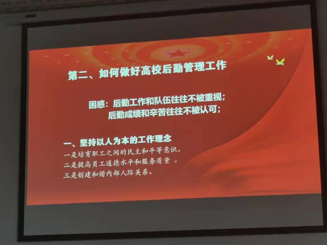 刘凯同志围绕十九届五中全会精神的核心要义,对《建议》进行了全面解读和深入阐述。他在党课中指出,党的十九届五中全会具有重大历史性、鲜明时代性和重要全局性,大家要深刻认识党的十九届五中全会重大意义,要进一步增强学习的自觉性、紧迫性,聚焦全会提出的新理念新要求,深刻认识新发展阶段、深入贯彻新发展理念、准确把握新发展格局,将学习全会精神贯彻落实到每一项具体工作中。针对一些同志存在的后勤工作常常不被重视,成绩和辛苦不被认可的困惑疑虑,他深入浅出为大家释疑解惑。他强调,面对繁重而复杂的后勤工作任务,后勤战线的广大干部一定要坚定贯彻习近平以人民为中心的思想,坚持以人为本的工作理念,注重后勤管理和大学生之间的良性互动,不断提高理论素养、思维能力和工作水平,统筹落实好后勤保障服务的各项重点工作,努力推动高校后勤管理社会化发展。