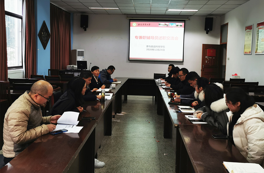 本网讯12月28日,学院召开2020年度专兼职辅导员述职交流会。院党委书记唐红萍,全体专兼职辅导员参会。会议由院党委副书记、纪委书记、副院长夏业鲍主持。
