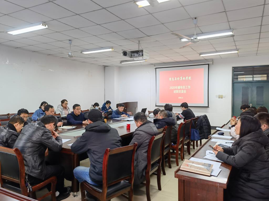 本网讯12月30日下午,信息与计算机学院在学院406会议室召开2020年度辅导员工作述职暨经验分享交流会。学院党委副书记吕剑秋参加并主持会议,全院全体专兼职辅导员参加述职并就相关工作进行交流。