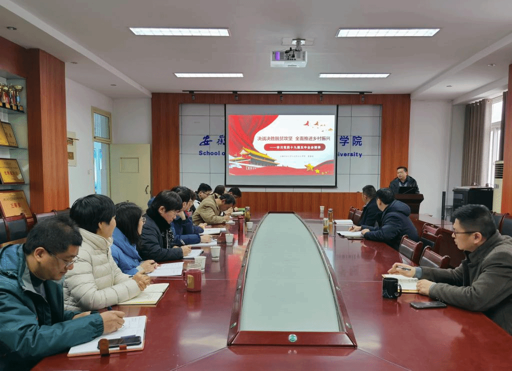 本网讯12月29日下午,生命科学学院邀请校党委讲师团成员,马克思主义学院副院长、副教授袁修雨在学院党委中心组(扩大)学习会上作了题为“决战决胜脱贫攻坚全面推进乡村振兴——学习党的十九届五中全会精神”的宣讲报告。学院党政领导、党委委员、党支部书记、系主任等参加了宣讲会。会议由学院党委书记甘传鹤主持。