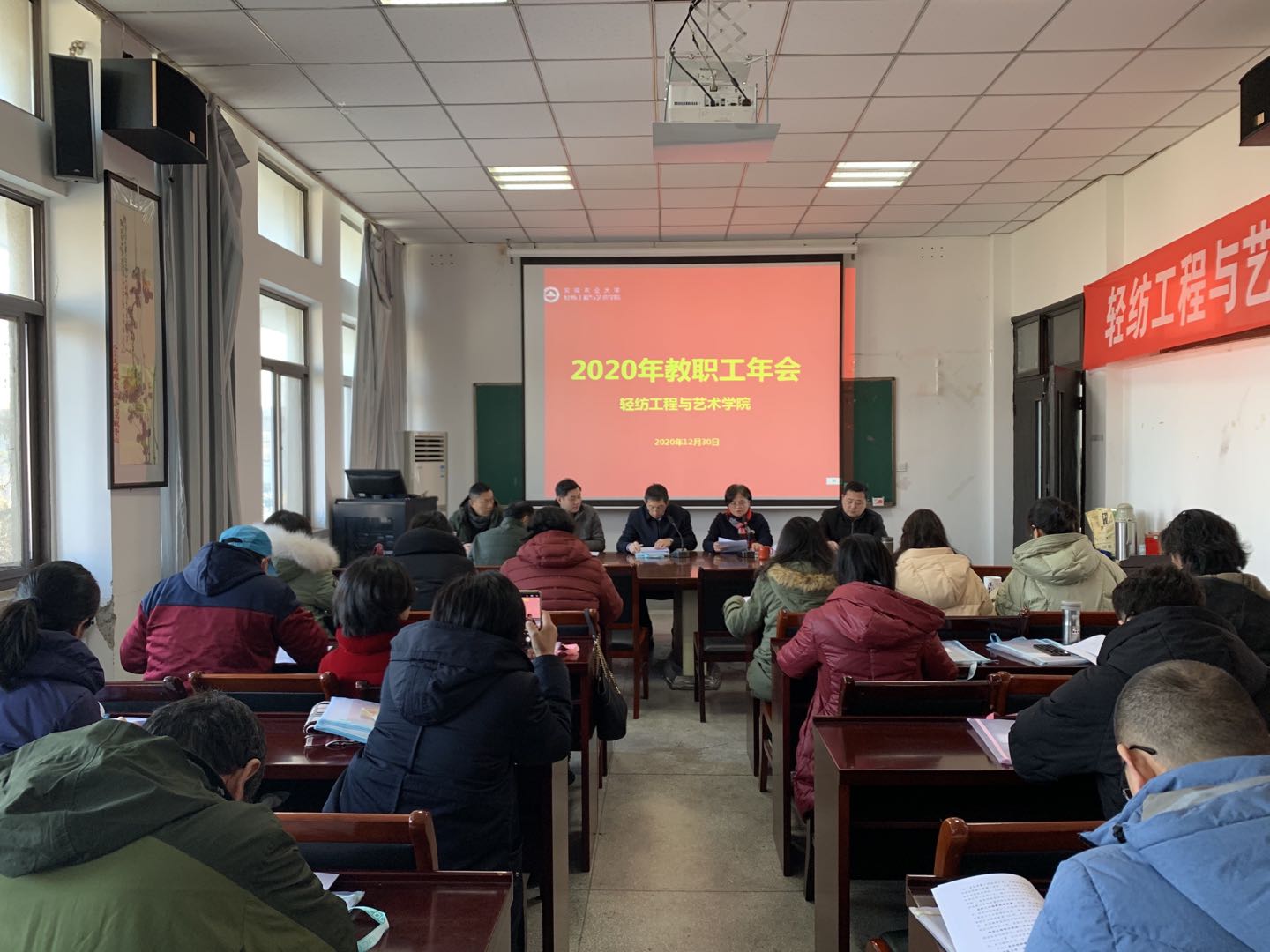 本网讯12月30日下午,轻纺工程与艺术学院在4楼会议室召开全体教职工2020年年会,全体教职工参加了本次会议,会议由学院党委书记夏成云主持。