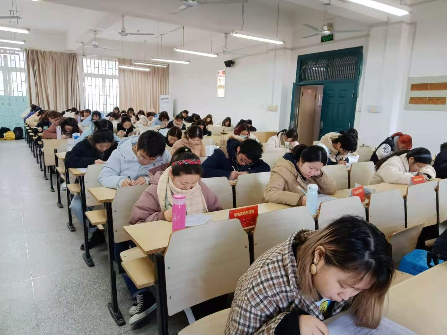 本网讯时值期末考试,人文社会科学学院考场里洋溢着满满的正能量,学生党员们用“党员示范岗”标识牌亮身份、当先锋、作表率,倡导诚信考试,促进学风建设,自觉接受师生监督。这是人文社会科学学院党委在学生党支部中推进诚信教育活动常态化制度化的一项有力举措。