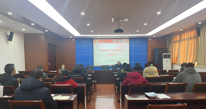 本网讯1月8日下午,理学院召开硕士研究生导师培训与人才培养报告会,会议邀请了校研究生教育教学咨询与督导专家组的余为一老师作报告,学院院长毕守东、副院长张成堂、俞杰及近5年取得导师资格的教师参加了此次培训。培训由学院党委副书记、副院长孙伟主持。