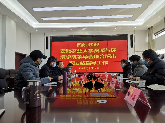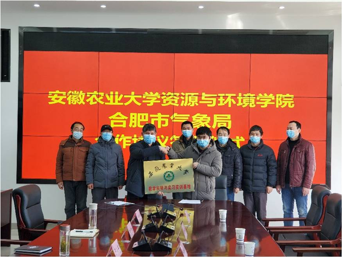 本网讯1月12日上午,资源与环境学院副院长叶新新及学院办公室、气象学教研室负责人一行6人,赴合肥市气象局农业气象试验站签署局校合作协议,并为双方共建“教学科研与实习实训”基地授牌。