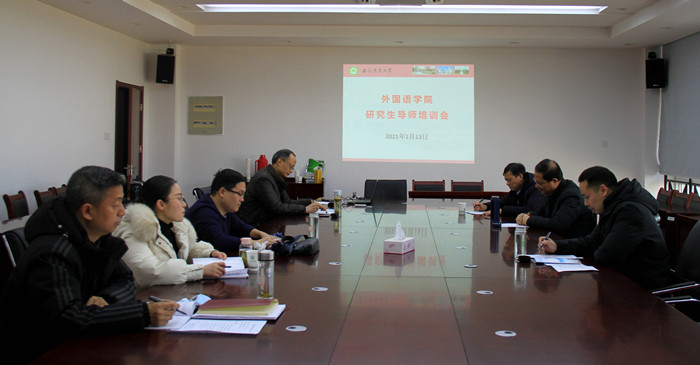 根据学校统一部署,全面落实研究生导师立德树人的根本任务,加强我院导师队伍建设,外国语学院于2021年1月13日下午在学院506会议室召开了研究生导师培训工作会议,会议由许宗瑞副院长主持,学院领导、研究生导师参会,会议还特邀了合肥工业大学马克思主义学院博导陈殿林教授作了如何做好研究生培养工作的专题报告。