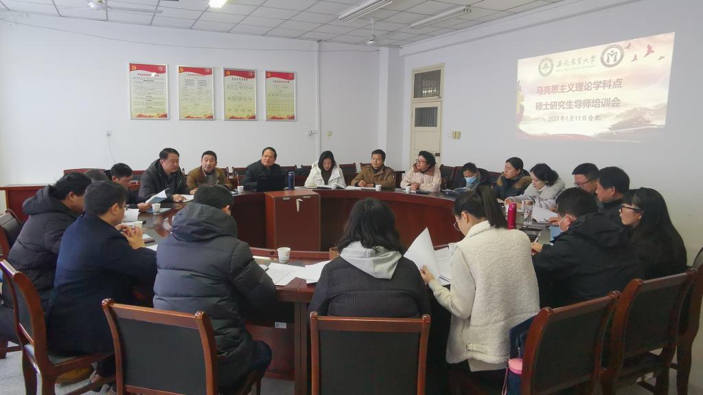 本网讯 为了进一步深入贯彻习近平总书记对研究生教育工作做出的重要指示精神,全面落实研究生导师立德树人根本任务,进一步加强我校导师队伍建设,提高导师指导研究生的能力和水平,切实提升研究生培养质量。按照《教育部 国家发展改革委 财政部关于加快新时代研究生教育改革发展的意见》《国务院学位委员会 教育部关于进一步严格规范学位与研究生教育质量管理的若干意见》以及省教育厅、财政厅相关相关精神,2021年1月11日下午,马克思主义学院组织开展马克思主义理论学科点建设研讨暨硕士研究生导师专题培训会。马克思主义学院党总支书记、院长黄洪雷,研究生院副院长姜家生及马克思主义理论学科硕士点导师参加会议。会议由马克思主义学院副院长袁修雨主持。