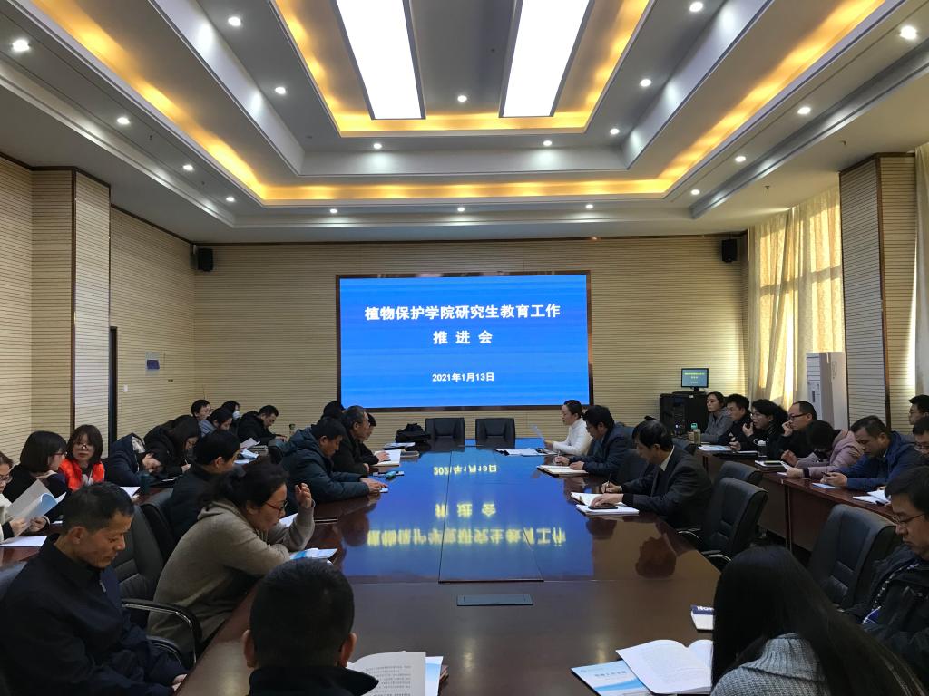 本网讯为深入学习习近平总书记关于研究生教育的重要指示精神,全面贯彻全国全省全校研究生教育会议精神,落实立德树人根本任务,进一步加强我院研究生导师队伍建设,提升研究生培养质量,1月13日,植物保护学院在1213会议室召开研究生教育工作推进会,学院党政领导、研究生督导组成员和全体研究生导师参加会议。会议由副院长张华建主持。