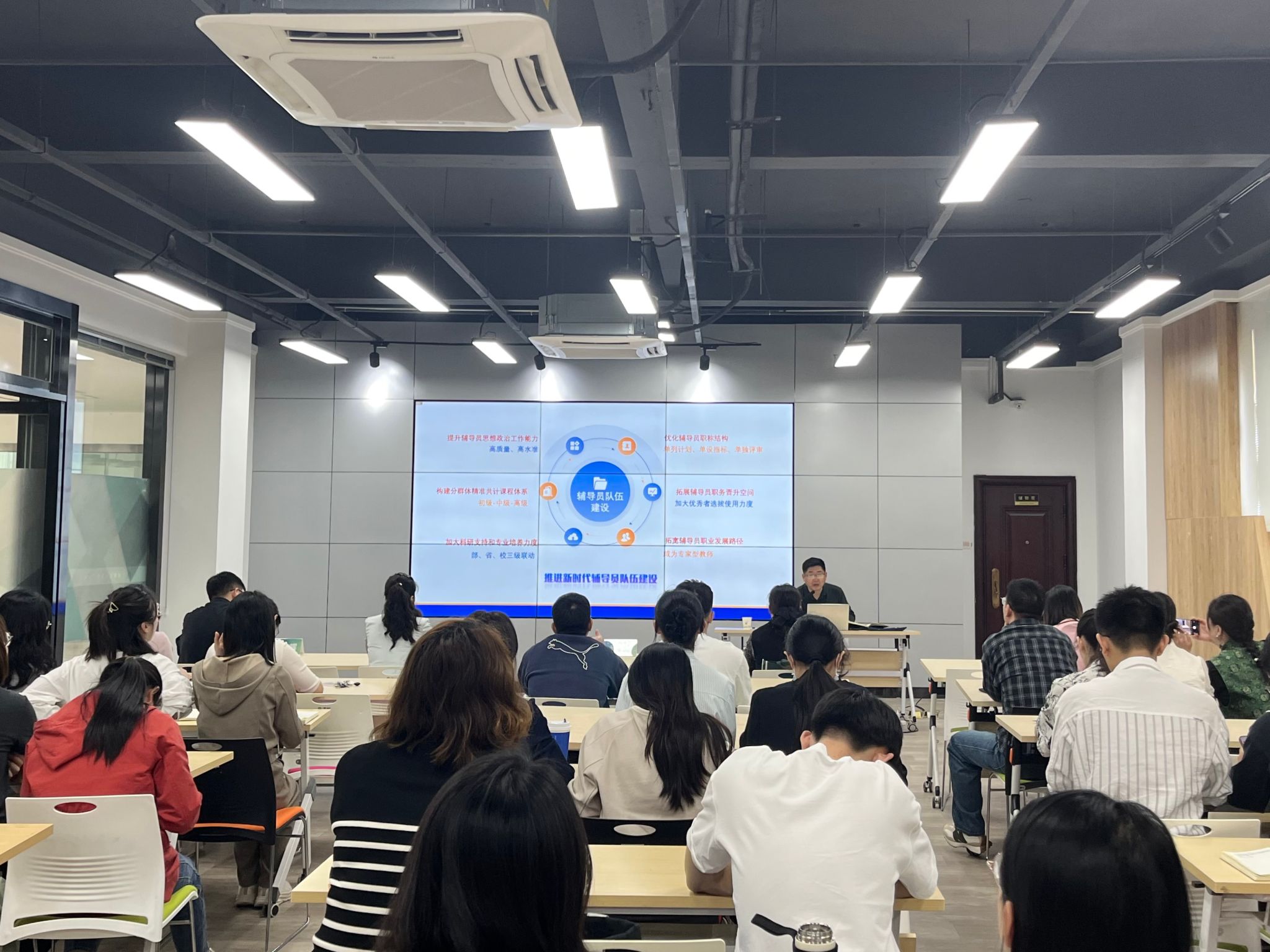 本网讯 4月10日上午,学工部(处)在欣苑3楼“一站式”学生社区南区邀请全国高校思想政治工作中青年骨干、合肥工业大学材料科学与工程学院党委书记武国剑,我校信息与人工智能学院党委副书记李南飞做客辅导员“学思荟”。学生处处长任琪,人文社会科学学院党委副书记孙辉,各学院专职辅导员参加培训会。会议由园艺学院专职辅导员花荣越主持。