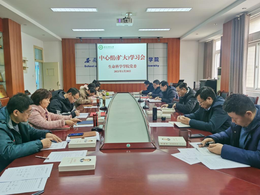 本网讯1月20日下午,生命科学学院在十教418会议室召开党委理论学习中心组(扩大)学习会,学院党政领导、党委委员、党支部书记参加会议。会议由学院党委书记甘传鹤主持。