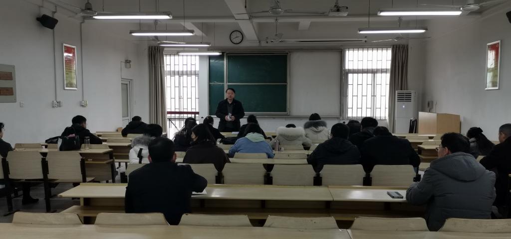 本网讯1月20日下午,马克思主义学院在人文楼302教室召开全体教师大会,对2020年度学院工作进行全面总结,对近期相关工作进行部署。会议由学院党总支书记、院长黄洪雷主持。副院长袁修雨及学院全体教师参加了会议。