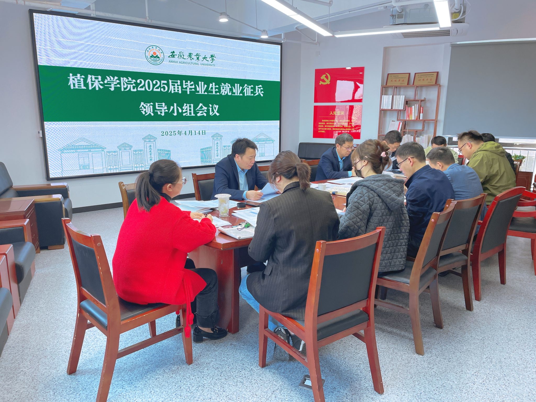本网讯 4月14日,植物保护学院在勤业楼1501会议室召开2025届毕业生就业征兵领导小组会议。学院党政领导、系主任、毕业班辅导员参加会议。会议由学院党委副书记汪小强主持。