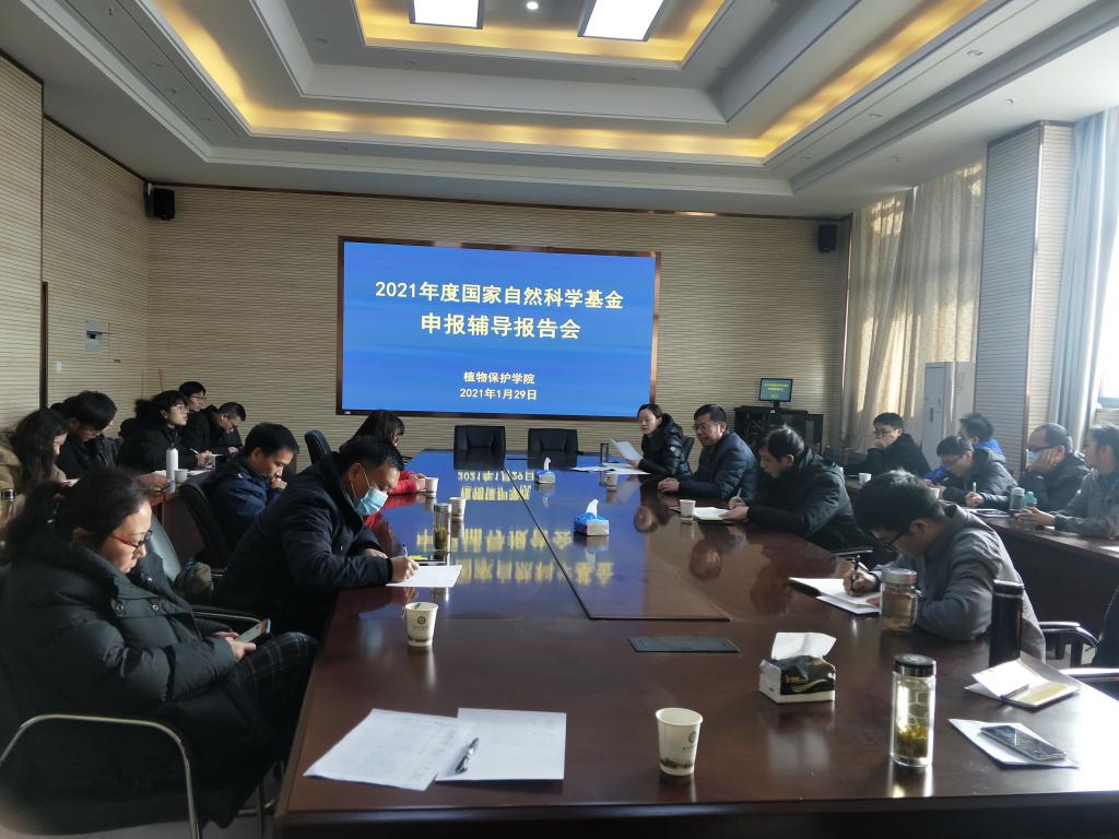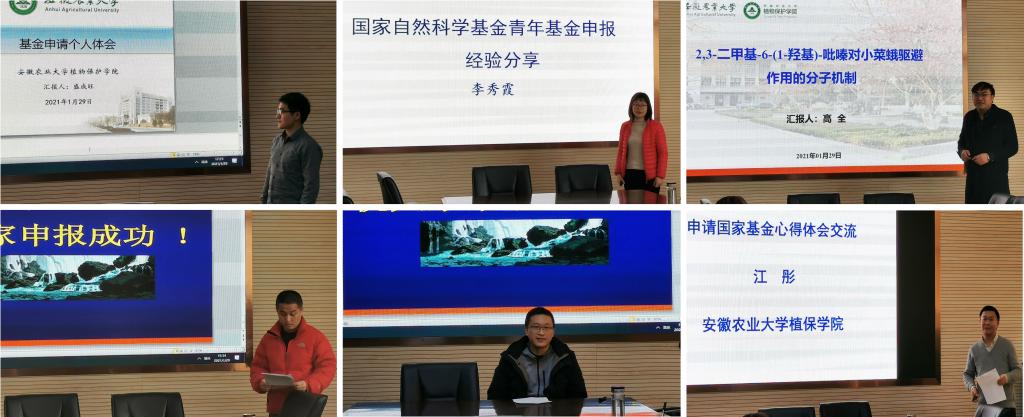 本网讯 1月29日下午,生命科学部植物保护学科2021年国家自然科学基金申报经验交流会在植保学院会议室召开。本院2020年获得国家自然科学基金项目资助的六位老师应邀进行经验分享交流。院党委书记张平、常务副院长潘月敏和学院40余人参加会议。会议由副院长张华建主持。