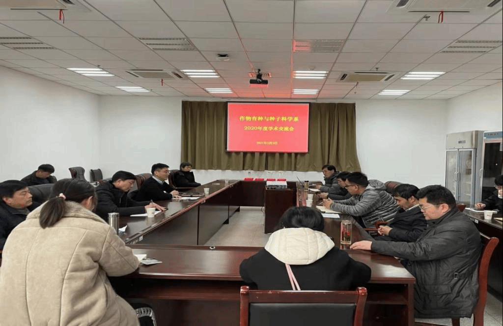 水稻、小麦、油菜、玉米和大豆等作物团队的7位老师分别介绍了个人及团队2020年度重要科研进展及存在问题。与会领导和专家结合作物育种与种子工程系2021年度国家基金申报、青年教师培养、作物学科发展,师生关切的共性问题进行了深入交流和探讨,会议气氛紧张热烈。马传喜教授结合中央经济工作会议、中央农村工作会议精神,深入分析了农学院作物学科发展机遇与挑战,希望学院在“十四五”期间突出重点,在关键短板上精准发力;要与国家需求、地方特色和生产实际相结合,在有所为有所不为上出实招;要重视上、中、下游研究的有效整合与衔接,在培育标志性的重大成果上下功夫。李金才院长结合江淮流域作物生产面临的关键科学和技术问题,要求育种与种子系要加强作物种质资源鉴定平台建设,聚焦种业“卡脖子”技术开展协同攻关,特别是要抓住行业发展带来新机遇,在“十四五”科技攻关项目上尽早谋划、乘势而上,在新阶段开好局起好步。