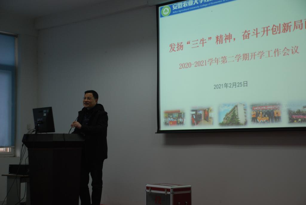 本网讯 2月25日下午,经济管理学院召开新学期开学工作会议,部署新学期重点工作,院党委书记、院长孙超主持,学院党政领导和全体教师参加。