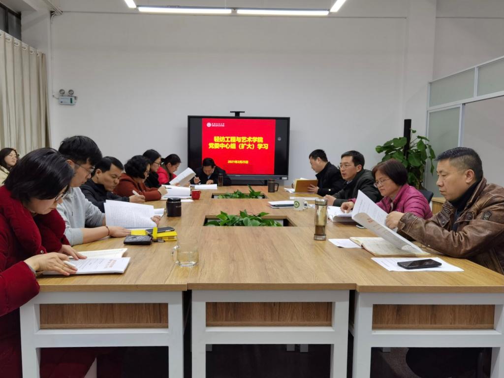 本网讯2月25日,轻纺工程与艺术学院党委中心组(扩大)学习会议在轻纺艺术楼三楼会议室召开,院领导班子成员、院党委中心组成员、系(中心)主任、支部书记参加会议,院党委书记夏成云主持此次会议。