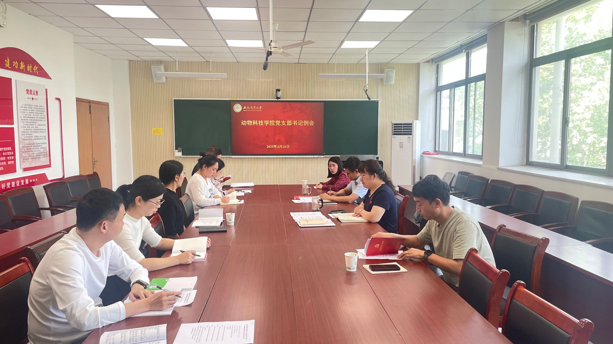 本网讯 4月18日,动物科技学院在动科楼306会议室召开党支部书记例会。会议由学院党委书记沈兆梅主持,党委副书记卢伟和全体党支部书记参加。