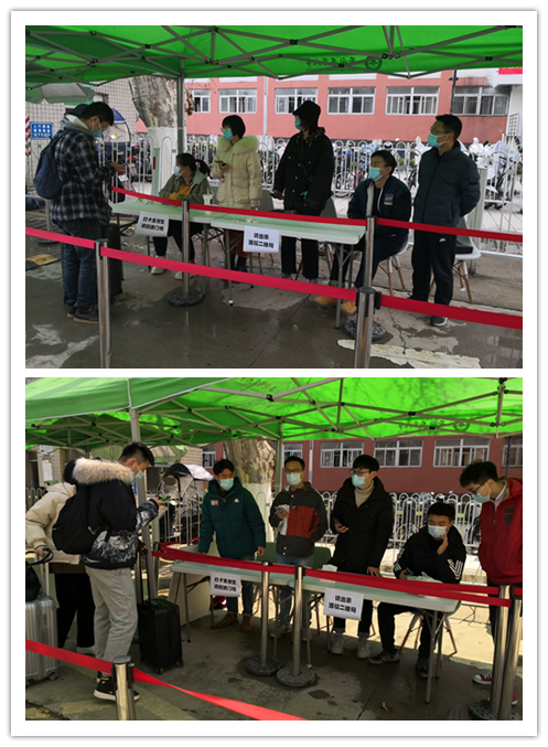 3月2日,学院专职辅导员老师和学院学生党员志愿者在学校东门值班,进行学生进校审核和学生信息确认工作。通过引导同学们依次通过返校体温测量、凭证确认、健康码及安康码核验等流程,有序步入阔别许久的校园。