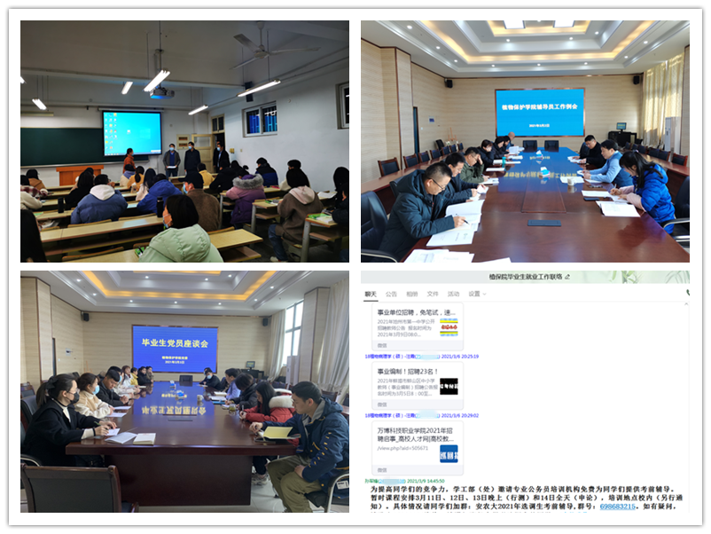 工作是否执行,作风是保证,力度是关键。在学校选调生动员会召开的当天下午,学院就组织召开全体辅导员工作会议进行部署推进,随后在第二天上午专门召集毕业研究生和本科生党员代表召开座谈会进行宣讲动员。为持续做好毕业生就业工作,学院从5个研究生、本科生毕业班中遴选了8名学生就业联络员,组建了全体毕业生的QQ群,整理了就业、考研调剂、考公务员事业单位等类别常用的官方网站,每日发布各类信息,及时通知到每位毕业生,扎扎实实为毕业生提供就业服务。