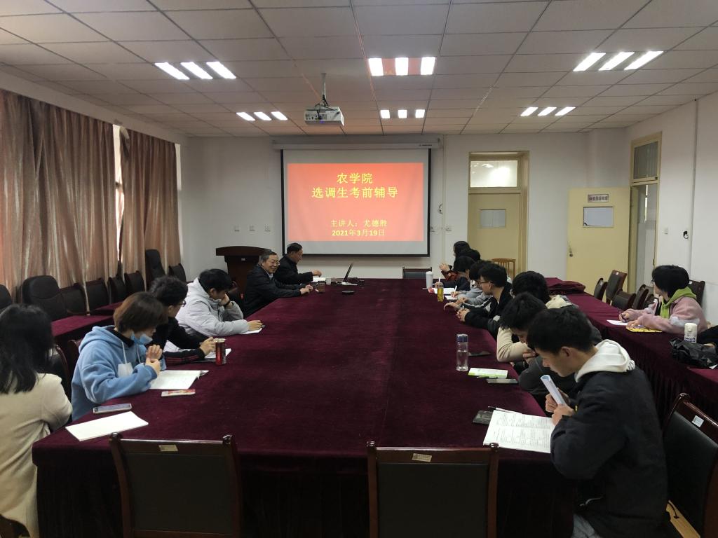 本网讯 为向有志加入公务员队伍的农学学子提供精准服务,3月19日下午,农学院邀请原信息与计算机学院党委书记尤德胜给农学院2021届毕业生作选调生考前辅导。辅导会由农学院党委书记管志权主持。