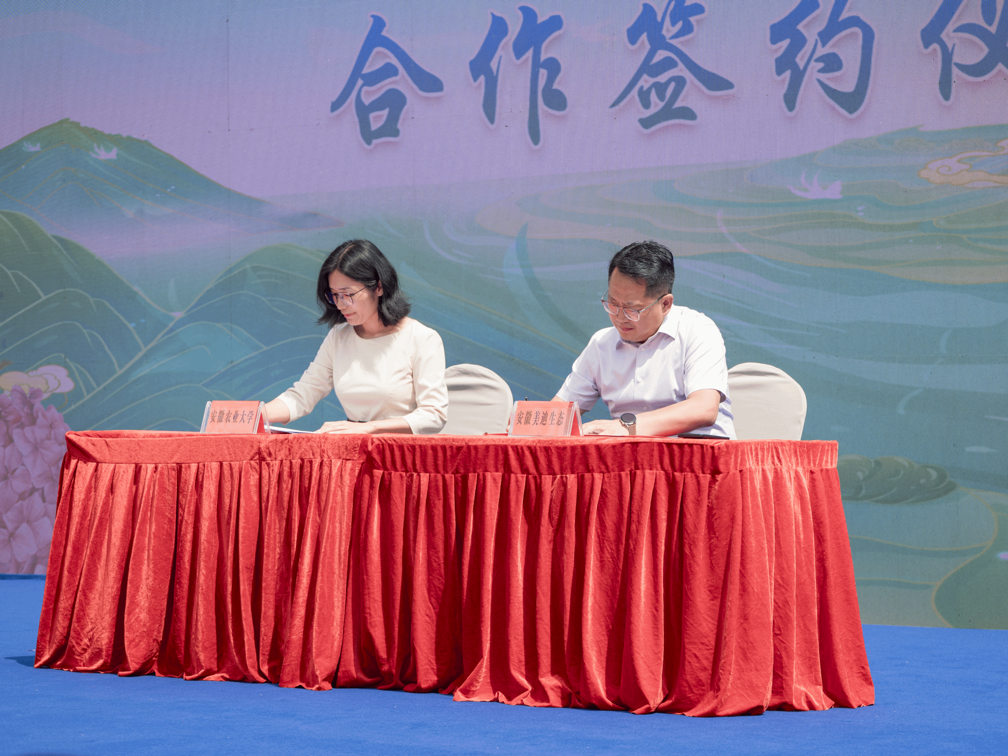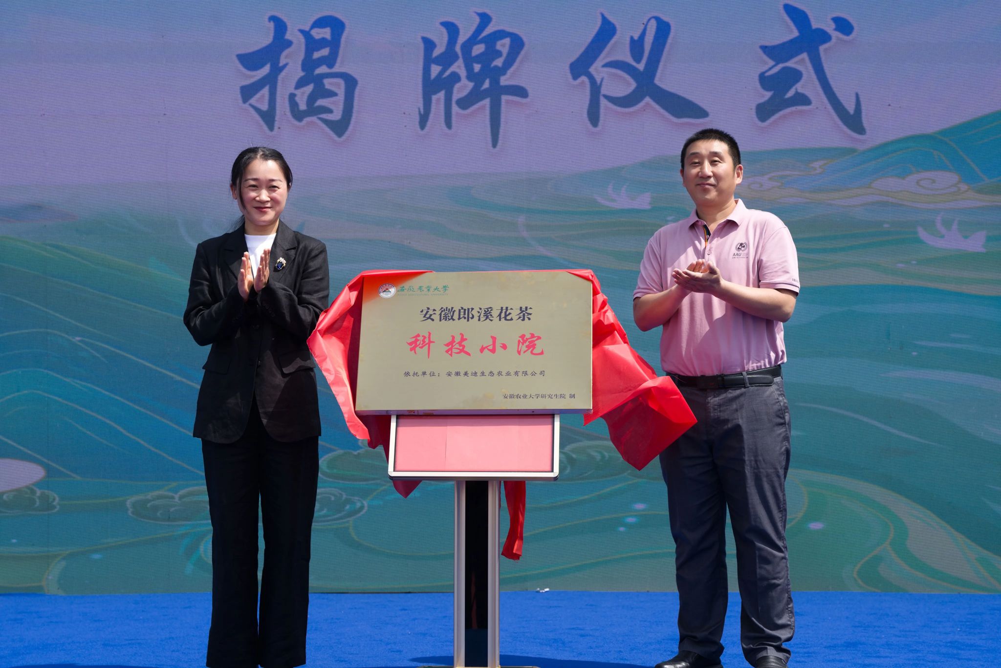 本网讯 4月30日,我校茶树种质创新与资源利用全国重点实验室与安徽郎溪美迪生态农业有限公司合作协议签订暨“安徽郎溪花茶科技小院”揭牌仪式在郎溪美迪花卉节举行。郎溪县委常委、宣传部部长、建平镇党委书记杨娟、茶业学院党委书记姜家生、相关专家代表出席揭牌仪式。