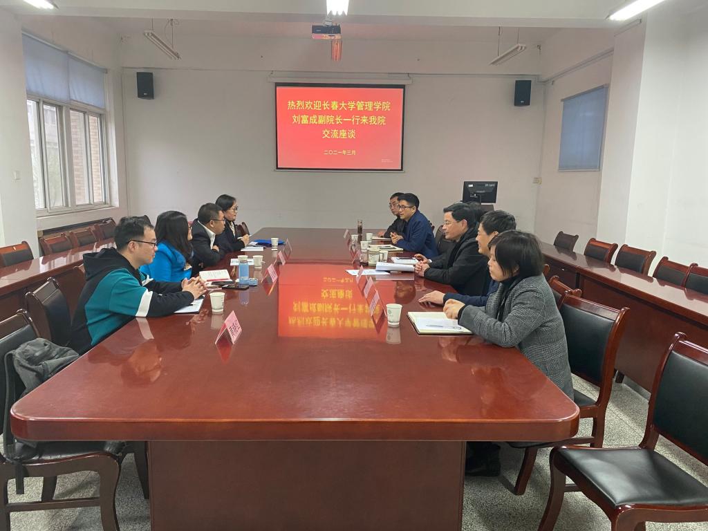 本网讯3月19日,长春大学管理学院副院长刘富成一行来我院交流。院党政领导和相关学科负责人参加了交流,会议由副院长刘鹏凌主持。