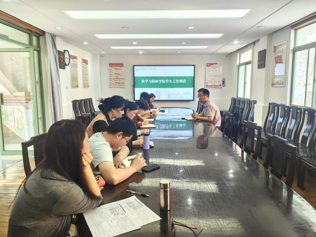 本网讯 4月29日下午,林学与园林学院在林学楼二楼会议室召开专兼职辅导员工作例会,全体专兼职辅导员参加会议。会议由院党委副书记陈枫主持。