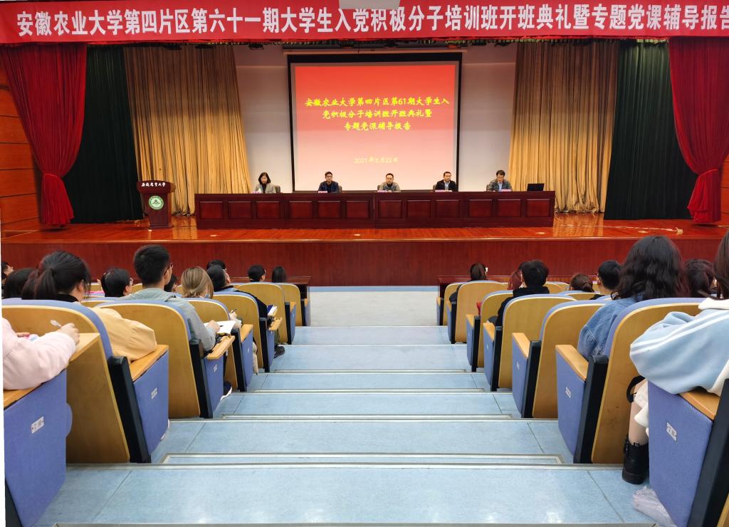 本网讯3月23日,校第四片区第61期入党积极分子培训班开班动员会在校图书馆第一报告厅顺利举行。人文社会科学学院党委书记张晓伟、马克思主义学院副院长袁修雨、经济管理学院党委副书记吴国卿、外国语学院党委副书记姬惠惠出席开班动员会,第四片区全体学员和班主任参加。会议由人文社会科学学院党委副书记吴永红主持。